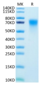 | Molecular Mass : | The protein has a predicted MW of 34.3 kDa. Due to glycosylation, the protein migrates to 65-80 kDa based on Tris-Bis PAGE result. |