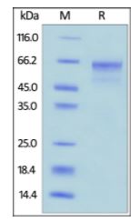 | Molecular Mass : | The protein has a calculated MW of 46.8 kDa. The protein migrates as 60-65 kDa under reducing (R) condition (SDS-PAGE) due to glycosylation. |