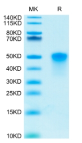 | Molecular Mass : | The protein has a predicted MW of 23.2 kDa. Due to glycosylation, the protein migrates to 48-55 kDa based on Tris-Bis PAGE result. |
