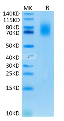 | Molecular Mass : | The protein has a predicted MW of 41.3 kDa. Due to glycosylation, the protein migrates to 68-95 kDa based on Tris-Bis PAGE result. |