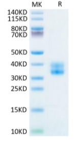 Molecular Mass : | The protein has a predicted MW of 20.2 kDa. Due to glycosylation, the protein migrates to 35-45 kDa based on Tris-Bis PAGE result. |