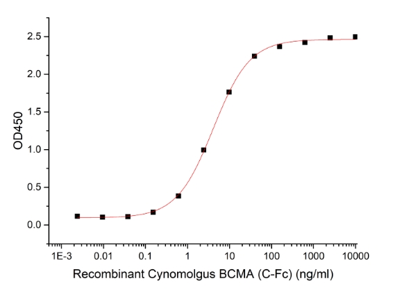 | Bio-activity : | Immobilized Human APRIL -Flag-His at 1μg/ml (100 μl/well) can bind Cynomolgus BCMA-Fc. The ED50 of Cynomolgus BCMA-Fc is 4.23 ng/ml. |