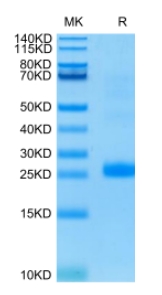 | Molecular Mass : | The protein has a predicted MW of 19 kDa. Due to glycosylation, the protein migrates to 25-30 kDa based on Tris-Bis PAGE result. |