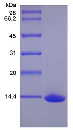 Approximately 14.3 kDa, a single non-glycosylated polypeptide chain containing 126 amino acids. |