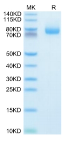 Molecular Mass : | The protein has a predicted MW of 70.2 kDa. Due to glycosylation, the protein migrates to 75-85 kDa based on Tris-Bis PAGE result. |