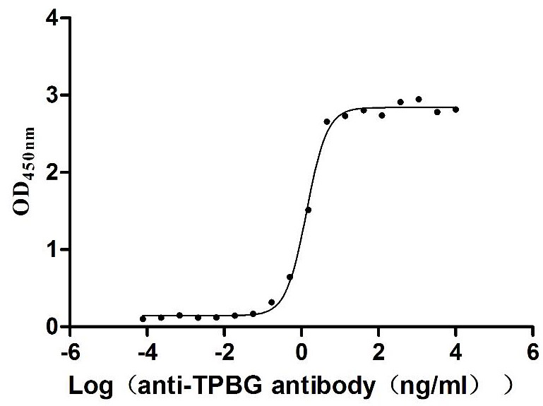 | Bio-activity : | Measured by its binding ability in a functional ELISA. Immobilized Human TPBG at 2 μg/mL can bind Anti-TPBG recombinant antibody, the EC50 is 1.230-1.519 ng/mL. |