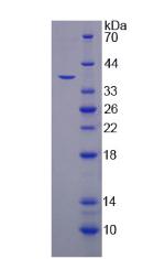 38kDa as determined by SDS-PAGE reducing conditions. |