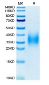 | Molecular Mass : | The protein has a predicted MW of 18.5 kDa. Due to glycosylation, the protein migrates to 28-40 kDa based on Tris-Bis PAGE result. |
