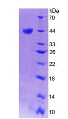 44kDa as determined by SDS-PAGE reducing conditions. |