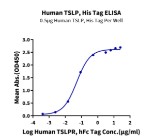 | Bio-activity : | Immobilized Human TSLP, His Tag at 5μg/ml (100μl/well) on the plate. Dose response curve for Human TSLPR, hFc Tag with the EC50 of 50.8ng/ml determined by ELISA. |