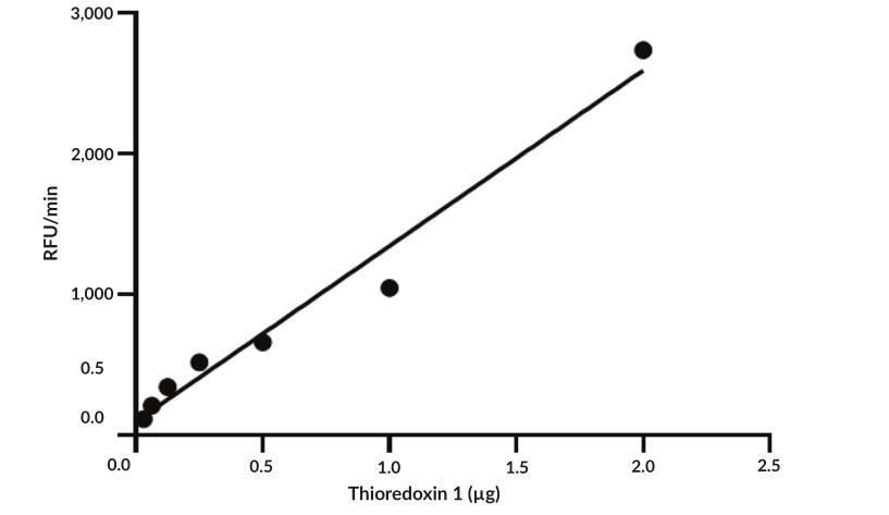 | Unit Definition : | One unit is defined as the amount of enzyme required to produce 1 nmol of eosin per minute at 37 centigrade in 50 mM Tris-HCl, pH 7.5, 1 mM EDTA, and 0.2 mg/mL BSA containing 8.3 μM eosin-labeled insulin, 250 μM NADPH, and 0.2 U/mL thioredoxin reductase. |
