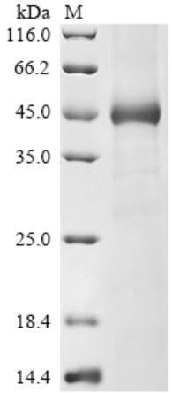 Product Overview : | Recombinant Human USP18 protein(1-372aa), fused with N-terminal His tag, was expressed in E. coli. |
