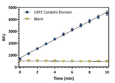 | Unit Definition : | One unit is defined as the amount of USP2 enzyme required to produce 1 pmol of AMC per minute at room temperature in 50 mM HEPES, pH 7.8, 0.5 mM EDTA, 1 mM DTT,and 0.2% CHAPS |
