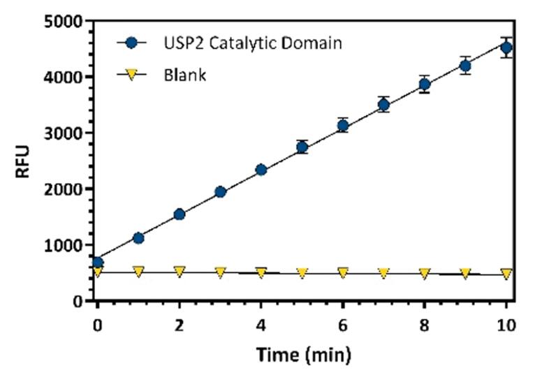 | Unit Definition : | One unit is defined as the amount of USP2 enzyme required to produce 1 pmol of AMC per minute at room temperature in 50 mM HEPES, pH 7.8, 0.5 mM EDTA, 1 mM DTT, and 0.2% CHAPS. |