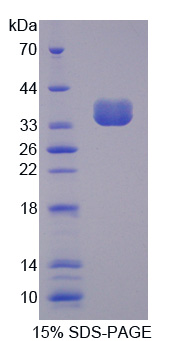 36kDa as determined by SDS-PAGE reducing conditions. |