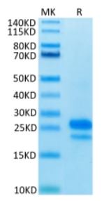 Molecular Mass : | The protein has a predicted MW of 19.2 kDa. Due to glycosylation, the protein migrates to 20-30 kDa based on Tris-Bis PAGE result. |