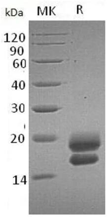 Storage : | Lyophilized protein should be stored at < -20 centigrade, though stable at room temperature for 3 weeks. Reconstituted protein solution can be stored at 4-7 centigrade for 2-7 days. Aliquots of reconstituted samples are stable at < -20 centigrade for 3 months. |