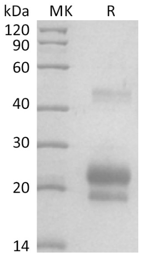 Storage : | Lyophilized protein should be stored at ≤ -20°C, stable for one year after receipt. Reconstituted protein solution can be stored at 2-8°C for 2-7 days. Aliquots of reconstituted samples are stable at ≤ -20°C for 3 months. |