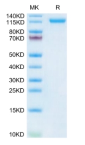 | Molecular Mass : | The protein has a predicted MW of 85.9 kDa. Due to glycosylation, the protein migrates to 115-125 kDa based on Tris-Bis PAGE result. |