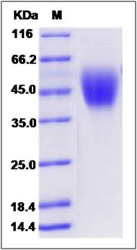 Molecular Mass : | The recombinant human VTCN1 comprises 241 amino acids and has a predicted molecular mass of 26.8 kDa. The apparent molecular mass of the protein is approximately 43-48 kDa in SDS-PAGE under reducing conditions. |