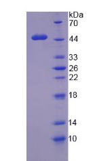 47kDa as determined by SDS-PAGE reducing conditions. |