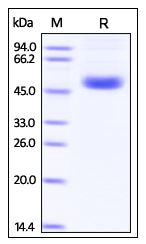 | Molecular Mass : | The protein has a calculated MW of 46.1 kDa. The protein migrates as 48 kDa under reducing (R) condition (SDS-PAGE). |