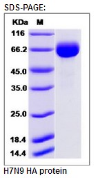 | Molecular Mass : | The recombinant hemagglutinin of Influenza A virus (A/Pigeon/Shanghai/S1069/2013(A/H7N9)) comprises 517 amino acids and has a predicted molecular mass of 57.7 kDa. The apparent molecular mass of the protein is approximately 58-69 kDa in SDS-PAGE under reducing conditions. |
