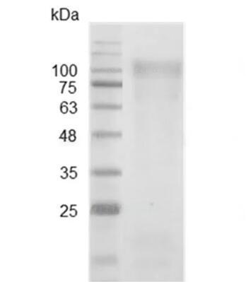 | Molecular Mass : | The protein has a calculated MW of 56.59 kDa. The protein migrates about 100 kDa under reducing condition (SDS-PAGE analysis). |