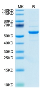 | Molecular Mass : | The protein has a predicted MW of 50.5 kDa. Due to glycosylation, the protein migrates to 52-60 kDa based on Tris-Bis PAGE result. |