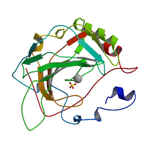 Carbonic anhydrases (CAs) are a large family of zinc metalloenzymes that catalyze the reversible hydration of carbon dioxide to form HCO3- and protons. Since discovered in 1933, fifteen CA isoforms have been reported sofar. CA I, CA II, CA III, CA VII, and CA XIII are cytosolic enzymes, whereas CA IV, CA IX, CA XII, CA XIV, and CA XV are membrane-associated isoforms. They have different patterns of tissue-specific expression and play different physiologic roles. CA XIV is a polypeptide consisting of an extracellular N-terminal catalytic domain, a membrane-spanning segment and a short intracellular C-terminal segment with several potential phosphorylation sites. CA14 is highly expressed in all parts of the central nervous system (CNS) with lower expression in adult liver, heart, small intestine, colon, kidney, urinary bladder, and skeletal muscle. |