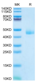 | Molecular Mass : | The protein has a predicted MW of 36.4 kDa. Due to glycosylation, the protein migrates to 40-50 kDa based on Tris-Bis PAGE result. |