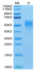 Molecular Mass : | The protein has a predicted MW of 29.1 kDa. Due to glycosylation, the protein migrates to 58-62 kDa based on Tris-Bis PAGE result. |