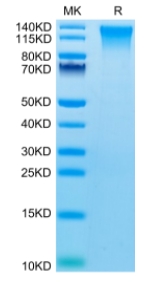 | Molecular Mass : | The protein has a predicted MW of 73.6 kDa. Due to glycosylation, the protein migrates to 75-140 kDa based on Tris-Bis PAGE result. |