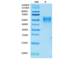 | Molecular Mass : | The protein has a predicted MW of 29.1 kDa.Due to glycosylation, the protein migrates to 44-62 KDa based on Bis-Tris PAGE result. |