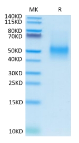 Molecular Mass : | The protein has a predicted MW of 25.9 kDa. Due to glycosylation, the protein migrates to 45-60 kDa based on Tris-Bis PAGE result. |