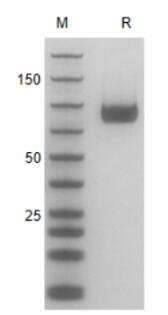 Molecular Mass : | The protein has a calculated MW of 67kDa.The reducing (R) heterodimer protein migrates as 75-100 kDa due to glycosylation. |