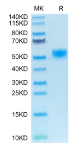 | Molecular Mass : | The protein has a predicted MW of 38.9 kDa. Due to glycosylation, the protein migrates to 50-60 kDa based on Tris-Bis PAGE result. |
