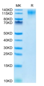 | Molecular Mass : | The protein has a predicted MW of 57.9 kDa. Due to glycosylation, the protein migrates to 90-130 kDa based on Tris-Bis PAGE result. |