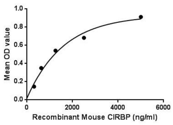 | Bio-activity : | Cold-inducible RNA-binding protein (CIRBP) plays a critical role in controlling the cellular response upon confronting a variety of cellular stresses, including short wavelength ultraviolet light, hypoxia, and hypothermia. Besides, Heterogeneous Nuclear Ribonucleoprotein A1 (HNRPA1) has been identified as an interactor of CIRBP, thus a binding ELISA assay was conducted to detect the interaction of recombinant mouse CIRBP and recombinant mouse HNRPA1. Briefly, CIRBP were diluted serially in PBS, with 0.01% BSA (pH 7.4). Duplicate samples of 100μL were then transferred to HNRPA1-coated microtiter wells and incubated for 2h at 37°C. Wells were washed with PBST and incubated for 1h with anti-CIRBP pAb, then aspirated and washed 3 times. After incubation with HRP labelled secondary antibody, wells were aspirated and washed 3 times. With the addition of substrate solution, wells were incubated 15-25 minutes at 37°C. Finally, add 50µL stop solution to the wells and read at 450nm immediately. The binding activity of CIRBP and HNRPA1 was shown, and this effect was in a dose dependent manner. |