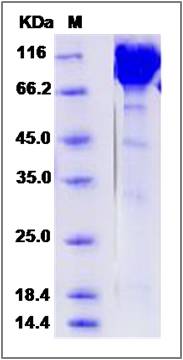 Molecular Mass : | The recombinant mouse CNTN1 comprises 991 amino acids and has a predicted molecular mass of 110.5 kDa. The apparent molecular mass of the protein is approximately 110-120 kDa in SDS-PAGE under reducing conditions due to glycosylation. |