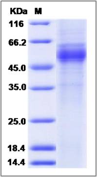 | Molecular Mass : | The recombinant mouse COLEC10/Fc is a disulfide-linked homodimer. The reduced monomer comprises 419 amino acids and has a predicted molecular mass of 47 kDa. The apparent molecular mass of the protein is approximately 53 kDa in SDS-PAGE under reducing con |