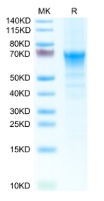 | Molecular Mass : | The protein has a predicted MW of 31.1 kDa. Due to glycosylation, the protein migrates to 60-70 kDa based on Tris-Bis PAGE result. |