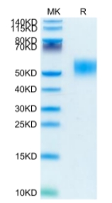 Molecular Mass : | The protein has a predicted MW of 33.1 kDa. Due to glycosylation, the protein migrates to 50-65 kDa based on Tris-Bis PAGE result. |