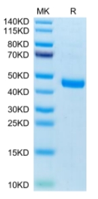 | Molecular Mass : | The protein has a predicted MW of 37.1 kDa. Due to glycosylation, the protein migrates to 40-50 kDa based on Tris-Bis PAGE result. |