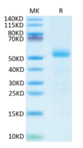 | Molecular Mass : | The protein has a predicted MW of 49.02 kDa. Due to glycosylation, the protein migrates to 52-60 kDa based on Tris-Bis PAGE result. |