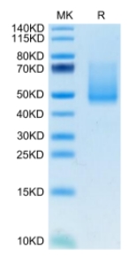 | Molecular Mass : | The protein has a predicted MW of 38.6 kDa. Due to glycosylation, the protein migrates to 48-68 kDa based on Tris-Bis PAGE result. |