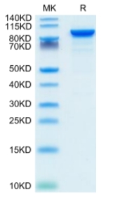 | Molecular Mass : | The protein has a predicted MW of 94.7 kDa. Due to glycosylation, the protein migrates to 95-110 kDa based on Tris-Bis PAGE result. |
