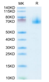 | Molecular Mass : | The protein has a predicted MW of 59.6 kDa. Due to glycosylation, the protein migrates to 68-80 kDa based on Tris-Bis PAGE result. |