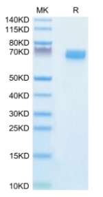| Molecular Mass : | The protein has a predicted MW of 59.3 kDa. Due to glycosylation, the protein migrates to 60-70 kDa based on Tris-Bis PAGE result. |