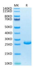 | Molecular Mass : | The protein has a predicted MW of 21 kDa. Due to glycosylation, the protein migrates to 25-30 kDa based on Tris-Bis PAGE result. |